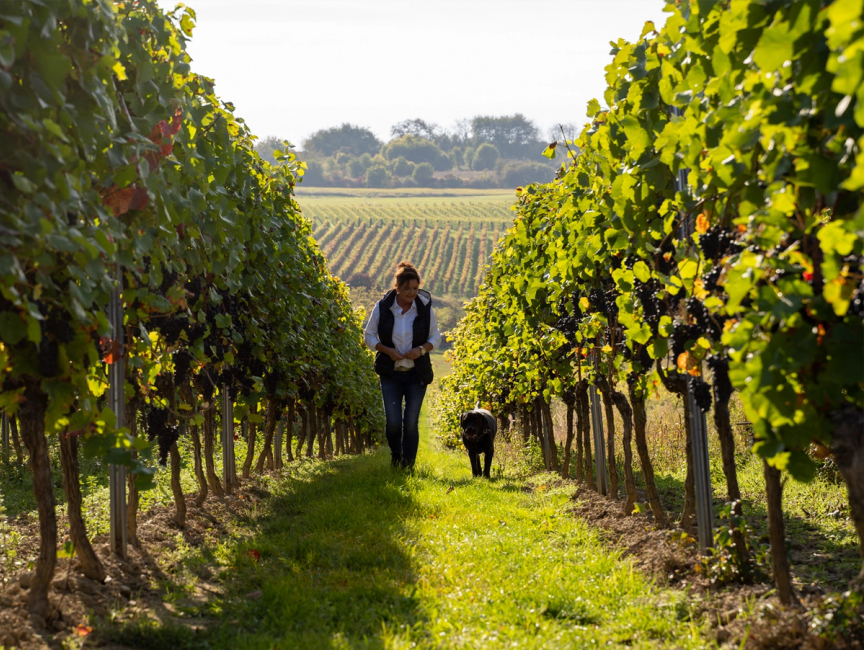 Abbie ist unser vierbeiniges Begrüßungskomitee und sorgt mit ihrer Art für den positiven Vibe auf dem Hof. Sie inspiziert täglich die Weinberge, erkennt jede Rebe am Geruch und weiß genau, wo die besten Trauben wachsen.